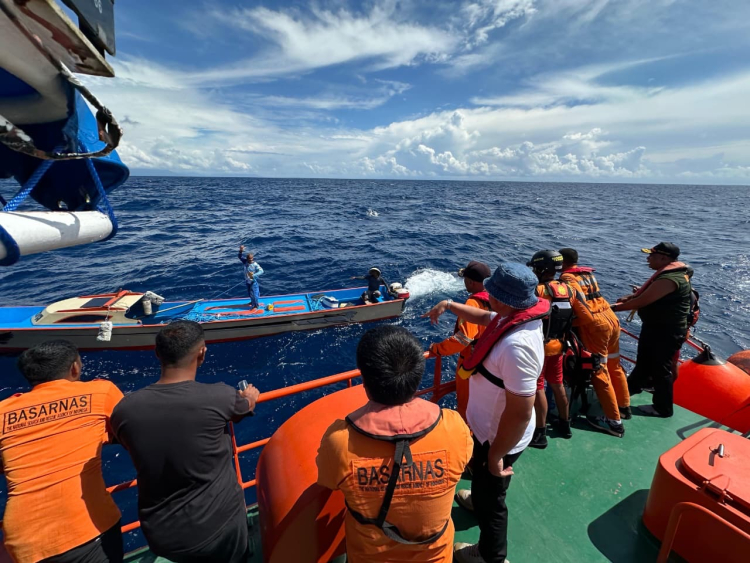 Proses evakuasi dua orang nelayan asal Tidore yang jatuh dari perahunya mancing karena dihantam gelombang pada 3 Desember 2025, foto Basarnas