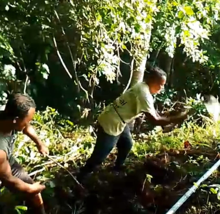 Gotong royong menarik pipa untuk air bisa mengalir sampai ke kampung,foto Jamal